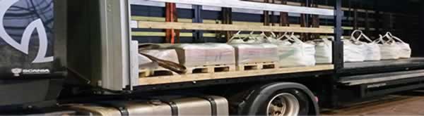 PE nebo PP pytle,1000-1500 kg na dřevěné paletě, karton, folie